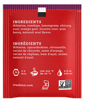 | Ingredients: hibiscus, rosehips, lemongrass, orange peel, chicory root, natural blackberry flavor, natural acai flavor, acai powder, licorice powder. |