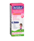 Benadryl Children's Allergy Liquid is specially formulated to provide relief from symptoms of allergy, hay fever, and the common cold. This delightful bubble gum flavored liquid is dye-free, making it suitable for children who may have sensitivities to artificial colors. It effectively alleviates sneezing, runny nose, itchy or watery eyes, and itching of the nose or throat. With its gentle formula, parents can trust Benadryl to help their little ones feel better during allergy season or whenever allergy symptoms arise.